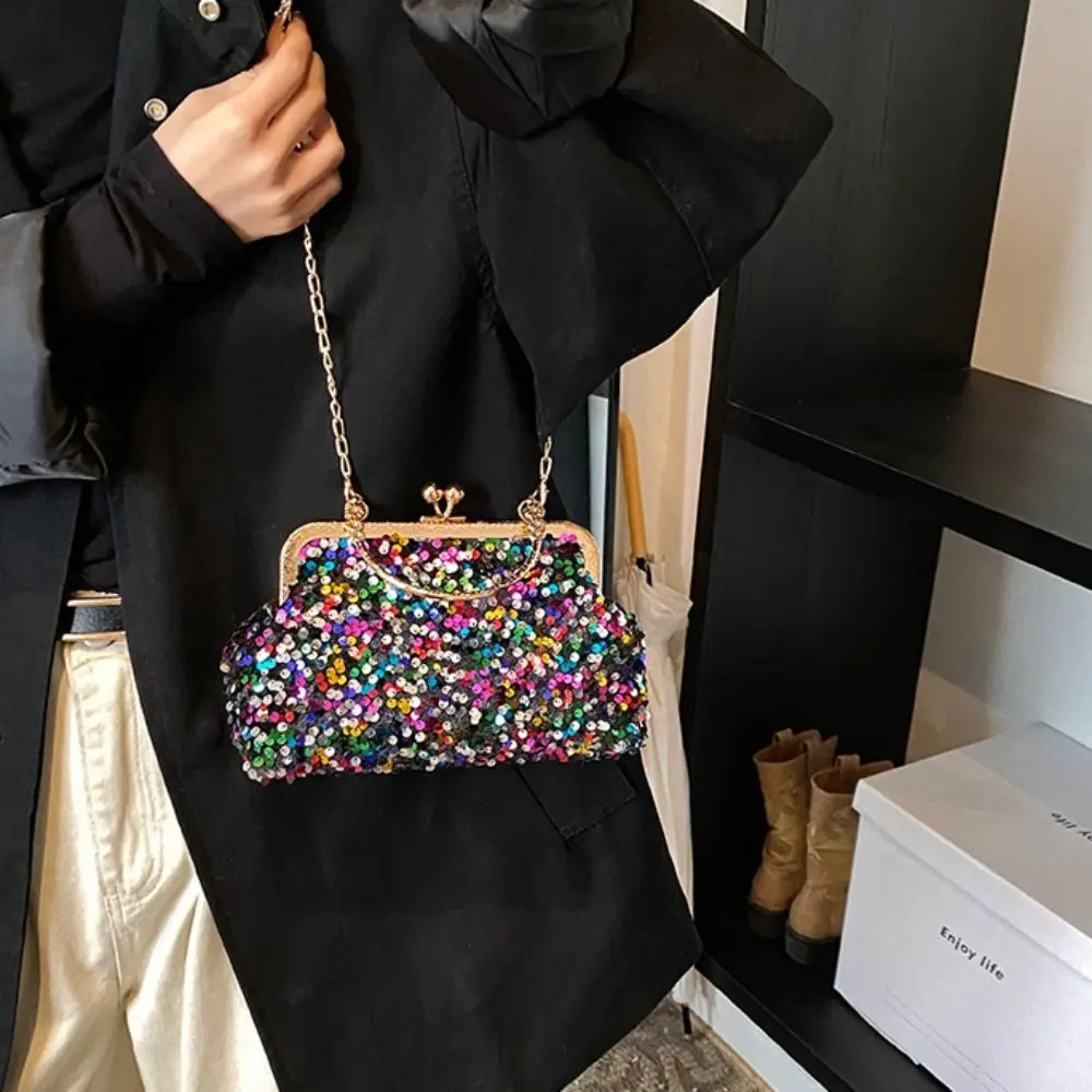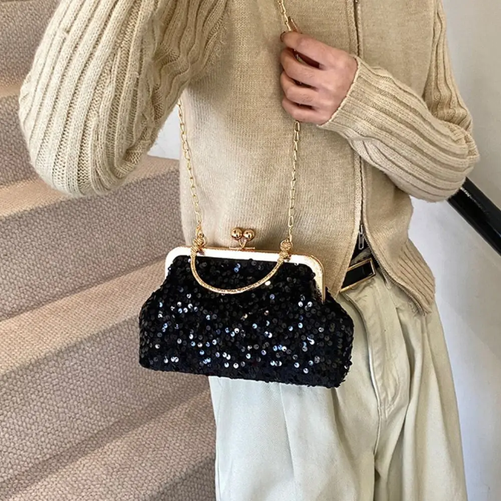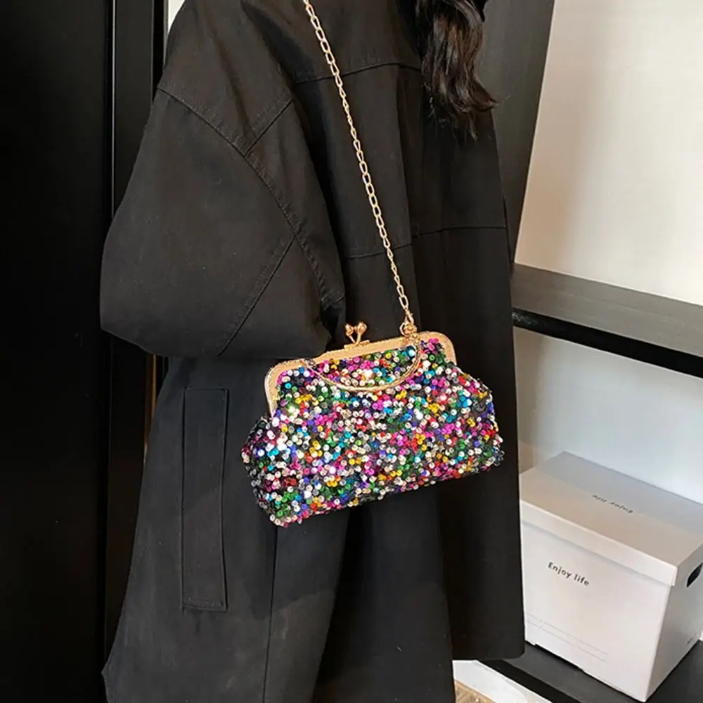 Elegant Shiny Sequins Shoulder Bag Luxury Clutch Bag Evening Banquet Bag Small Purse Handbag Banquet Chain Bag Lady